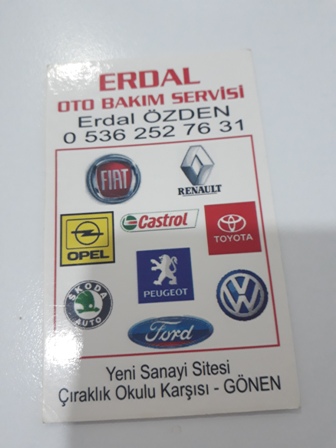 ERDAL Oto Bakım Servisi Erdal Özden 0536 252 7631 Yeni Sanayi Sitesi Çıraklık Okulu Karşısı – Gönen