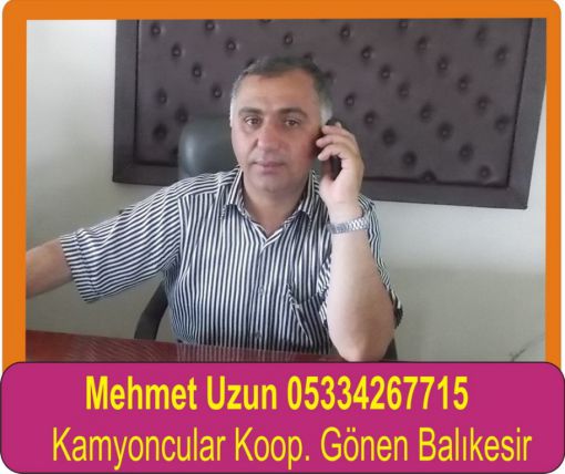 Yönetim Kurulu Yönetim Kurulu Başkanı Mehmet Uzun 05324131509 Kadri Dinçer Başkan Yrd 0533 639 43 73 Turgay Ekim Üye 0544 818 83 33 Özgür Akçay Üye 0542 672 78 05 Ferit Bağcı Üye 0507 786 68 32 Edirne'den Kars'a Kadar Yurt İçi Taşımacılık Bizim İşimiz Yük sigortası güvencesiyle Türkiye'nin Hizmetinizdeyiz Şehirler arası her türlü yük ve eşya taşımacılığı, anlaşmalı ve sözleşmeli nakliyat işlerinizde Hizmetinizdeyiz. Adres: Gündoğdu Mah. Korudeğirmen Yolu Üzeri 1. Km Gönen Balıkesir Türkiye