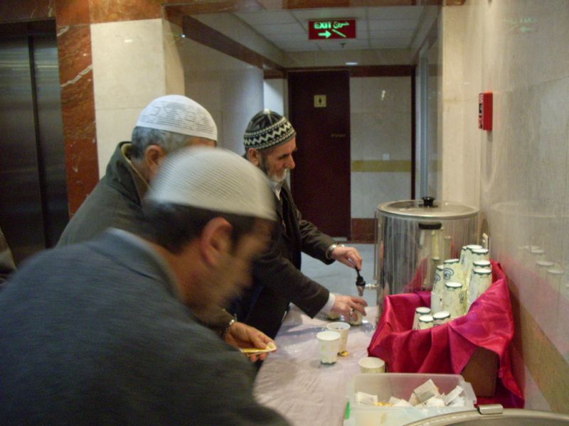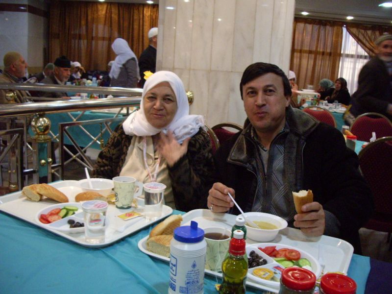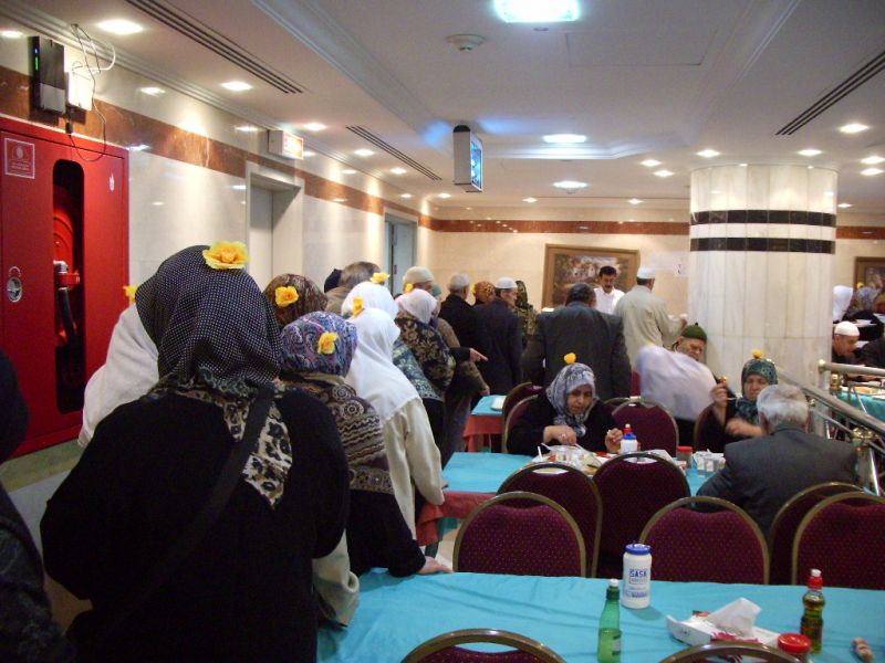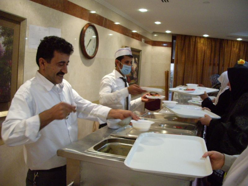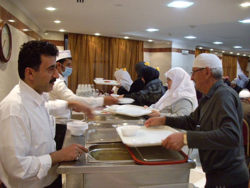 Umrecilere Lezzetli Türk YemekleriUmreciler Kendi Evinde Gibi Medinede kalınan otelde günde iki öğün yemekleri Türkiye den İskenderunlu bir aşçı olan Nurettin Paklacı yapıyor. Sabah ve akşam yemekleri Ravzatıl Mütehahraya 200 metre mesafedeki otelde bulunan ve işletmesini bir Türk aşçı olan Nurettin Paklacı yapıyor. 16 yıldır Suudi Arabistanın Medne şehrinde ikamet eden Türk girişimci yemekhanesinde Türk hacıları sevdiği yemekleri yapıyor.