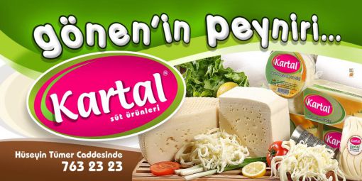 Serdar Kartal 05325106515 Hakiki Gönen Peyniri Bizde Doğadan Gelen Doğal Lezzetler Gönen Balıkesir Şube 1: 763 2323 Gönen Balıkesir Şube:2: 7624849 Gönen Balıkesir Şube:3: 7622737 Gönen Balıkesir Sarıköy Şube 4: 7741406 Çanakkale Çan Şube 5:0286. 4165859 Gönen Balıkesir Sarıköy Fabrika:0266.7741961 Hüseyin Tümer Cad. No 31Gönen Balıkesir Telefon(0266) 763 2323 www.kartalsut.com/ | ||||||||||||||||||||